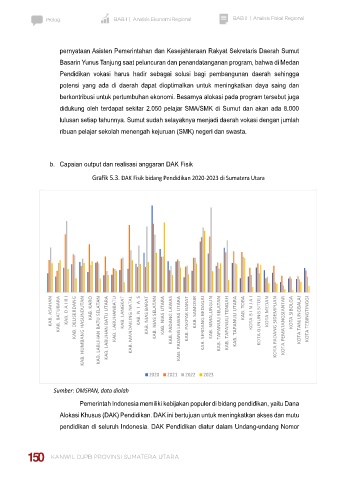 Grafik 5.3. DAK Fisik bidang Pendidikan 2020-2023 di Sumatera Utara Utara secara umum mengalami fluktuasi pada 4 tahun terakhir. Pada wilayah Kota secara
