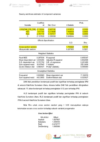 Method: Panel EGLS (Cross-section random effects) WILAYAH Effect