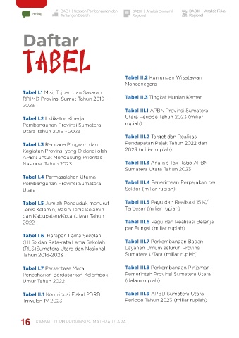 Tabel II.1 Kontribusi Fiskal PDRB Tabel III.9 APBD Sumatera Utara