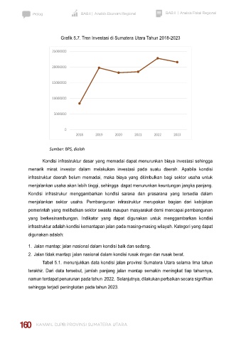 Grafik 5.7. Tren Investasi di Sumatera Utara Tahun 2018-2023 Tabel 5.1. Kondisi Kemantapan Jalan Provinsi Sumatera Utara Tahun 2019-2023