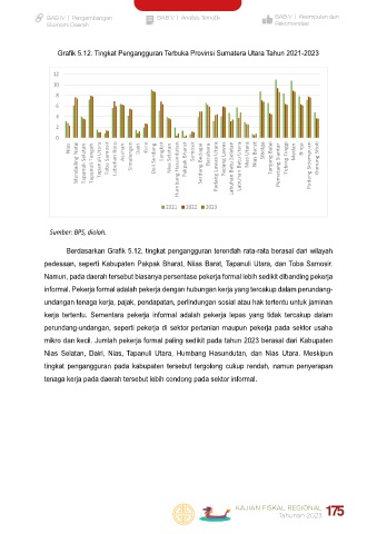 Berdasarkan Grafik 5.12, tingkat pengangguran terendah rata-rata berasal dari wilayah