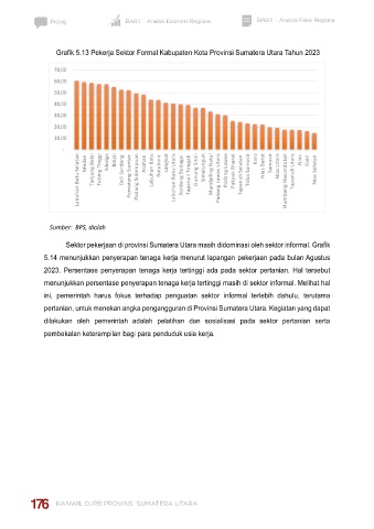 Grafik 5.13 Pekerja Sektor Formal Kabupaten Kota Provinsi Sumatera Utara Tahun 2023 Grafik 5.14 Grafik Penyerapan Tenaga Kerja per Sektor Tahun 2023 Provinsi Sumatera Utara
