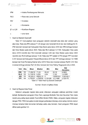 (IPM) yang bersumber dari BPS dan Rata-Rata Lama Sekolah (RLS) sebagai variabel kontrol. terbaik. Berdasarkan pengujian Chow Test, Lagrange Multiplier Test, dan Hausman Test, maka