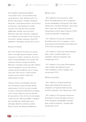 Bidang Pendidikan. Program tersebut Trans: Kendala meliputi revisi anggaran, pengadaan barang dan jasa, serta dan kondisi cuaca. Sementara itu, RO