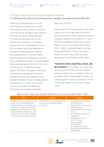 Dasar 1945. Untuk mencapai tujuan kebijaksanaan moneter, kebijakan Tabel I.1 Misi, Tujuan dan Sasaran RPJMD Provinsi Sumut Tahun 2019 - 2023