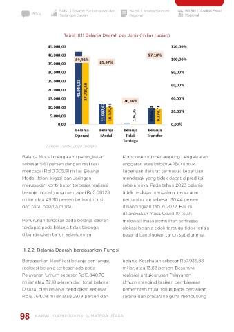 Tabel III.11 Belanja Daerah per Jenis (miliar rupiah) Grafik III.12 Belanja Daerah per Fungsi pemulihan ekonomi. Tingginya