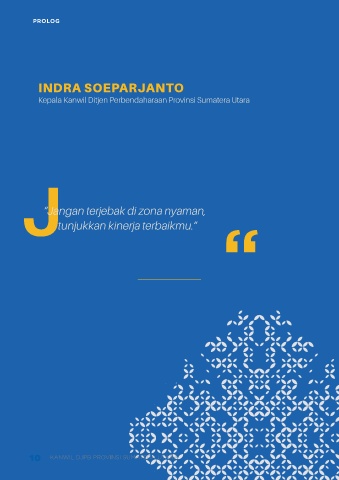 PROLOG INDRA SOEPARJANTO Kepala Kanwil Ditjen Perbendaharaan Provinsi Sumatera Utara J “Jangan terjebak di zona nyaman, “ tunjukkan kinerja terbaikmu.” 10 KANWIL DJPB PROVINSI SUMATERA UTARA