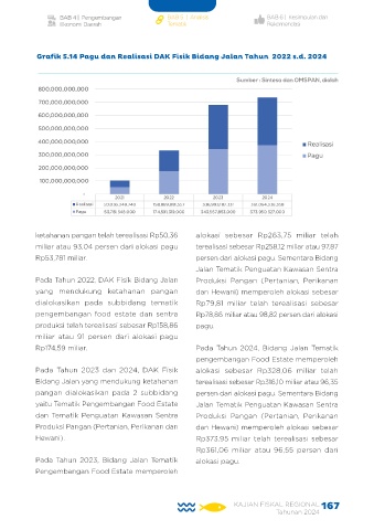 Grafik 5.14 Pagu dan Realisasi DAK Fisik Bidang Jalan Tahun 2022 s.d. 2024