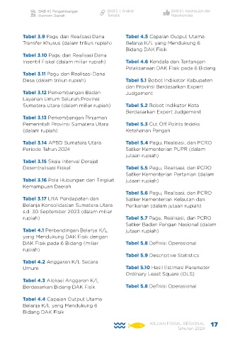 Tabel 3.9 Pagu dan Realisasi Dana Tabel 4.5 Capaian Output Utama