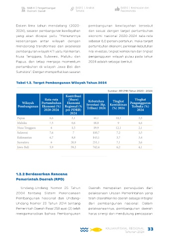 2024), sasaran pembangunan kewilayahan dan sesuai dengan target pertumbuhan