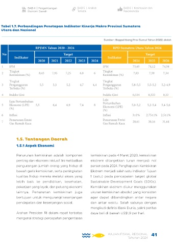 Tabel 1.7. Perbandingan Penetapan Indikator Kinerja Makro Provinsi Sumatera