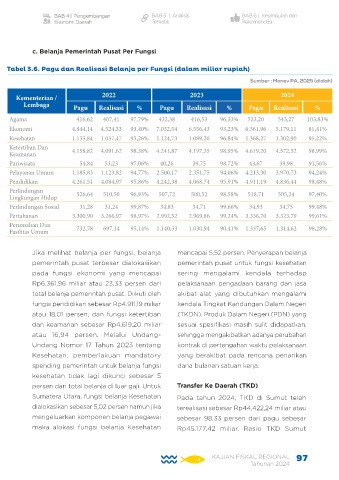 Tabel 3.6. Pagu dan Realisasi Belanja per Fungsi (dalam miliar rupiah)